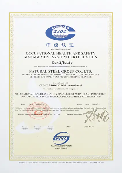 The company has subsequently passed a series of management system certification such as ISO9001, ISO14001, and OHSAS18001 as well as Good Standardizing Conduct and the measurement level confirmation, etc. and the company has carried out a comprehensive standardized management system.